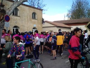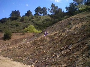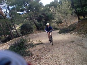 Après le ravito, nous repartons pour une descente de folie avec pierres qui roulent et branches dans la gueule. Un Jean François me cède le passage, ça glisse, le vélo est dur à contrôler, mais c'est le pied. Arrivé en bas le Jean François me fait un chapeau bas, apparemment impressionné par ma prestation. Nous repartons de nouveau vers une nouvelle cote avant d'attaquer la descente vers Lambesc. Le reste du parcours se termine à travers les vignes et nous nous retrouvons tous au lieu de départ pour l'apéro et la remise des lots. Dommage qu'il y ai eu ce foutu Mistral et la boue. Maintenant il faut rentrer et nettoyer les bikes, ils en ont besoin et nous aussi. |